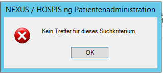 Kein Treffer für dieses Suchkriterium bedeutet, dass der Patient nicht gefunden wurde.