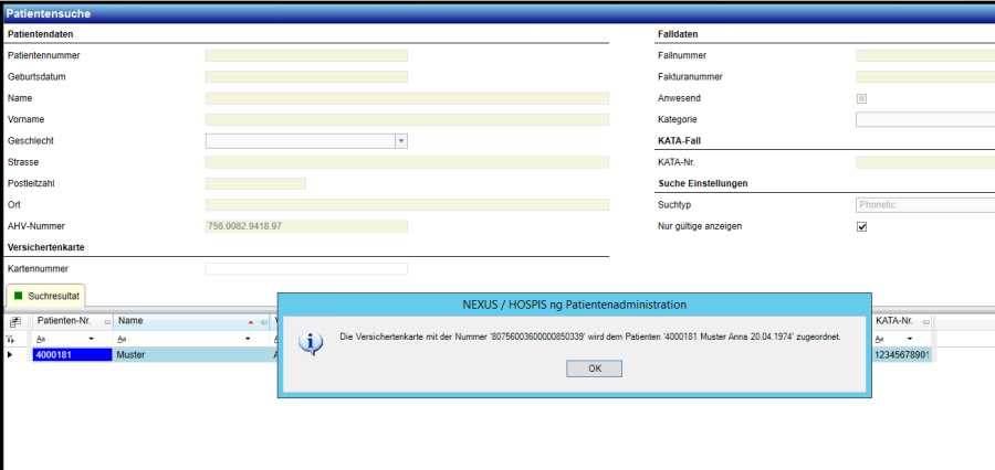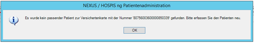 Wenn es keinen Patienten mit dieser Versichertenkarte findet, kommt folgende Meldung