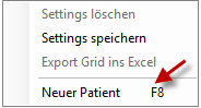 Nun mit rechter Maustaste (F8) einen neuen Patienten erfassen.