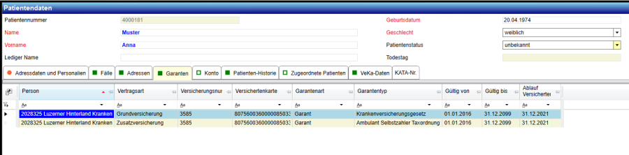 Nun ist der Garant automatisch der Versichertendeckung entsprechend im System beim Garant Patient erfasst.