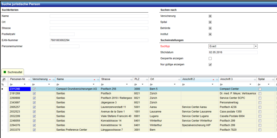 Statt auf Name, Vorname, Geburtsdatum und Geschlecht kann auch mit der Sozialversicherungsnummer gesucht werden, das funktioniert aber nur, wenn dies von SASIS explizit freigeschaltet wurde. Hierfür wird eine separate Vereinbarung zwischen SASIS und dem Spital benötigt.