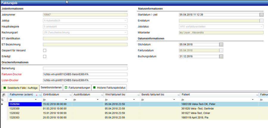 In Job 10947 wurden die folgenden Fälle selektiert: