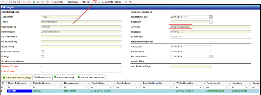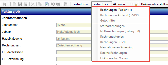 Man hat die Möglichkeit in jedem Fall (egal ob der Fall in automatischen Jobs fakturiert und in Stapeln gedruckt wurde), die Rechnungen einzeln aus dem Fall heraus zu drucken.