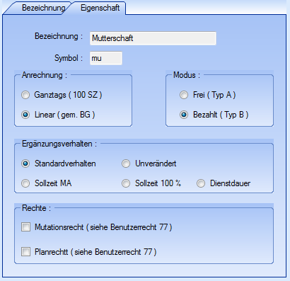 unbezahlte = Frei (Typ A) Absenz oder um eine bezahlte = Bezahlt (Typ B) Absenz handelt.