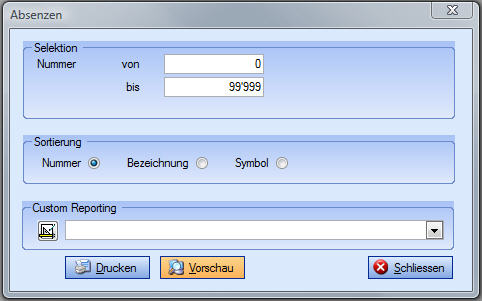 Unter „Selektion" geben Sie die Nummer der Absenzen die Sie ausdrucken wollen ein.