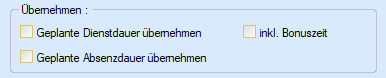Mit diesem Schalter können die geplanten Dienst- oder Absenzdauer übernommen werden, wenn ein Dienst mit der entsprechenden Absenz/Abwesenheit ersetzt (überplant) wird.
