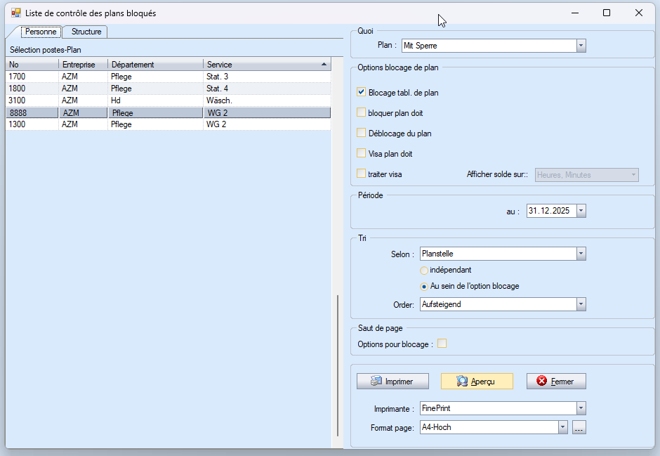 Il est également possible de créer des évaluations pour les postes « sans blocage ». Cela permet de vérifier facilement quels processus sont encore en cours dans les planifications.