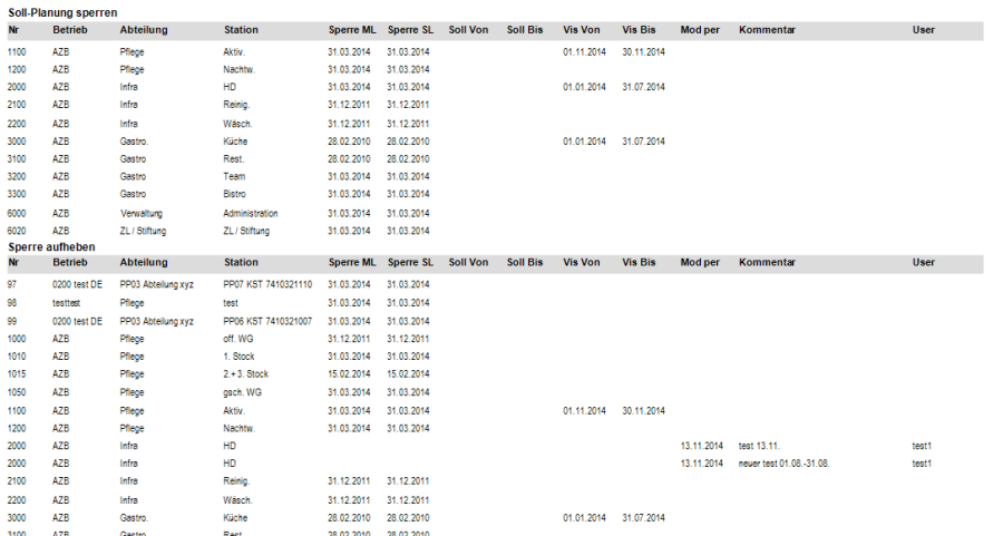 L'évaluation des blocages permet de vérifier les différents blocages et validations. Les options sélectionnées sont répertoriées dans le rapport sur une certaine période et donnent un aperçu des blocages/validations existants.