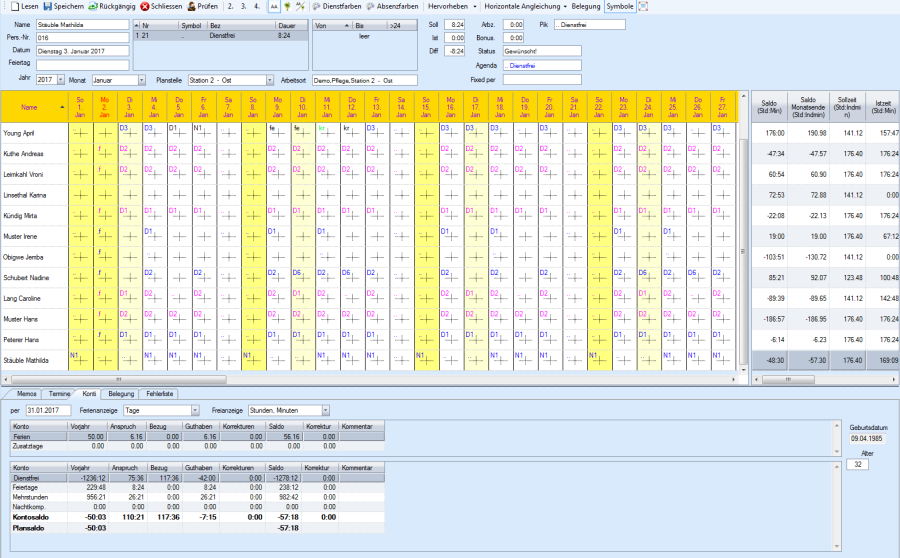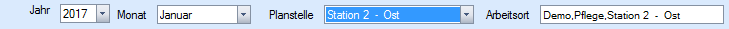 Mit Hilfe der Auswahlzeile wählen Sie die gewünschte Station, das Jahr und den Monat für die Planung.
