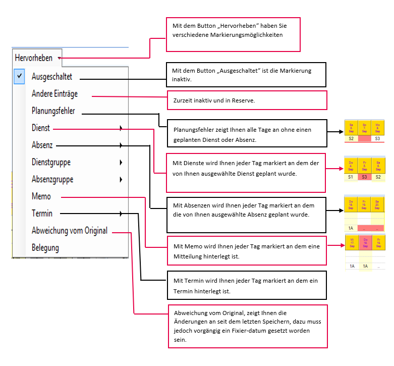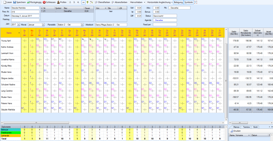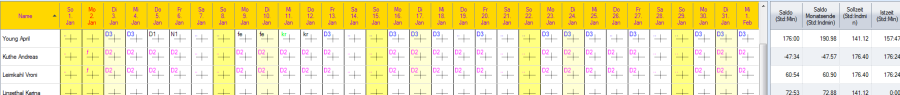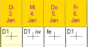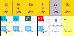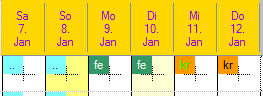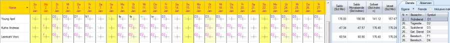 Auswahl Mix: Je nach Definition der Dienste oder Absenzen werden Ikonen und Symbole anzeigt.