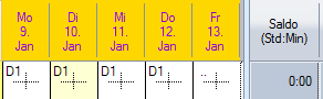 Arbeitszeit Montag – Freitag = keine Differenz Saldo unverändert
