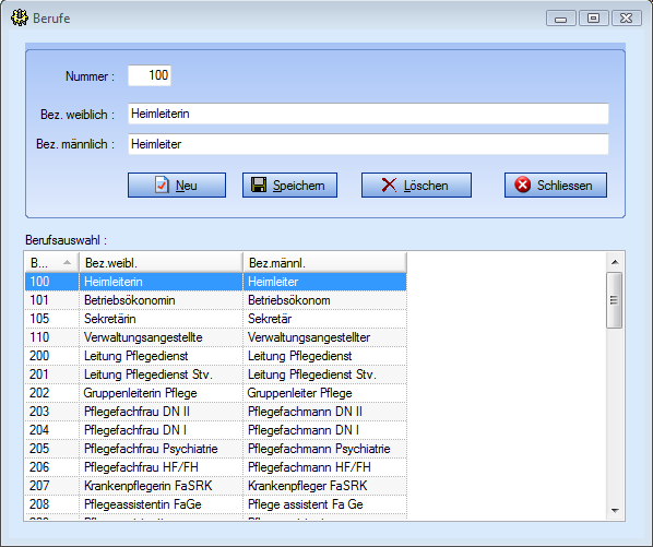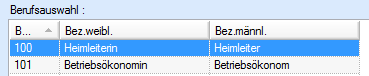Im unteren Teil der Maske werden die von Ihnen erfassten Berufe angezeigt.