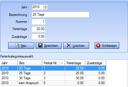 | Anzahl der Ferientage für diese Kategorie |