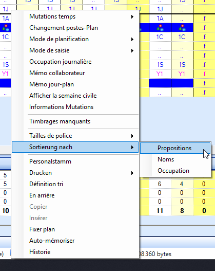 Avec le bouton droit de la souris dans le tableau de service, vous pouvez sélectionner le tri par occupation.