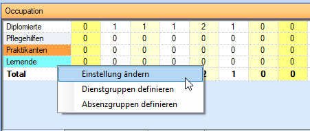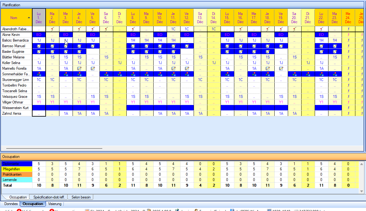 en double-cliquant sur la ligne « Total », les employés concernés sont mis en évidence en couleur dans le planning en fonction de leur fonction.