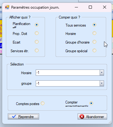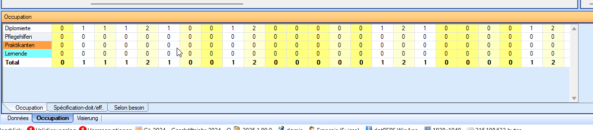 L'affichage de l'occupation journalière vous permet de vérifier si vous avez prévu suffisamment de services avec du personnel qualifié. Vous déterminez vous-même les services que vous souhaitez compter.