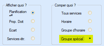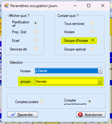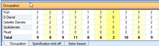 Avec le paramètre « Groupe spécial », les services attribués aux groupes de services correspondants sont comptés pour chaque ligne d'occupation journalière.