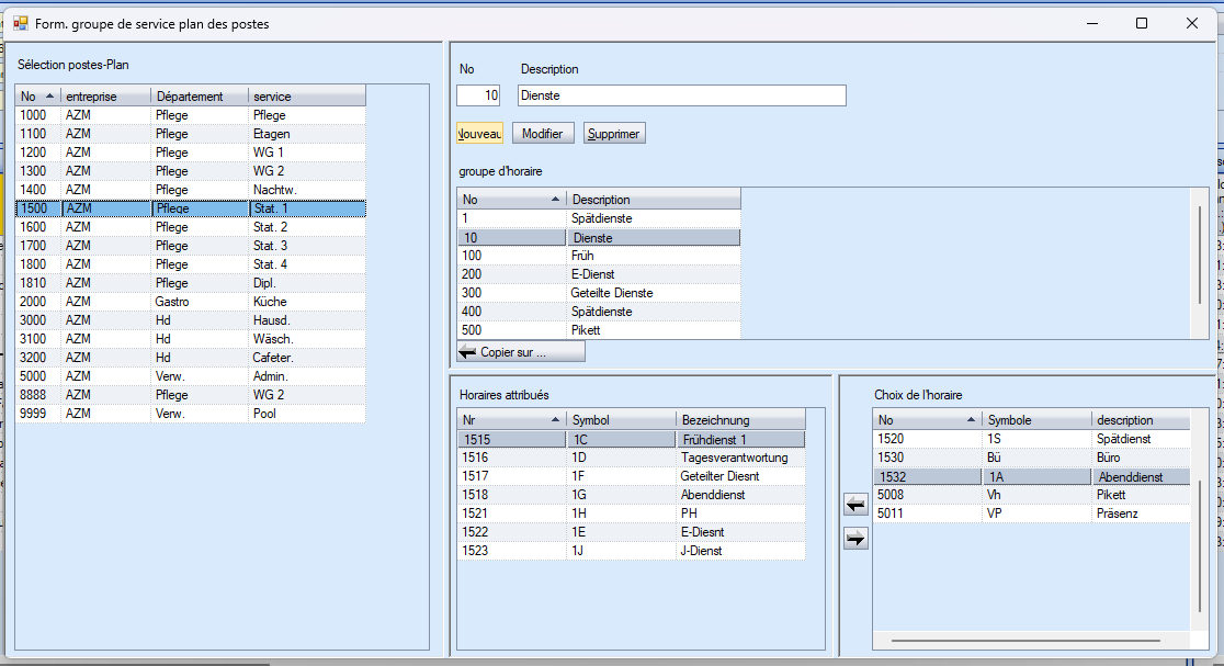 Dans cet exemple, le groupe de services « N° 10 Services » a été créé. Seuls les services à compter ont été attribués à ce groupe.