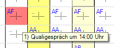 Fahren Sie nun mit der Maus auf den Tag wird der Memo-Eintrag angezeigt. In unserem Beispiel also das Qualigespräch