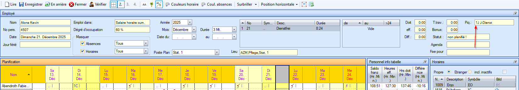 Si vous souhaitez maintenant planifier un autre symbole de planification qui se trouve déjà quelque part sur le tableau de planification, vous pouvez cliquer dessus avec le bouton gauche de la souris et le nouveau symbole à planifier apparaîtra dans le champ « Piq ».