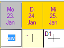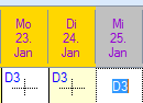 Nur Dienste und Absenzen/Abwesenheiten ergänzen sich, wenn sie in mehreren Spalten verplant werden. Absenz und Absenz kumulieren.