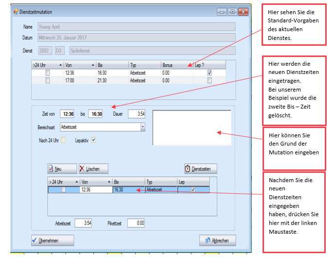 4.1 Die Arbeitszeit eines Dienstes verändern