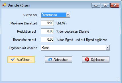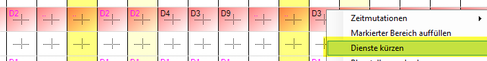 Ab Version 3.5.3.11 besteht die Möglichkeit Dienste zu kürzen. Sie können einzelne Dienste oder einen frei definierten Bereich auf einmal kürzen.