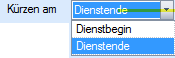 Unter „Kürzen am" geben Sie an ob der Dienst am Dienstende oder Dienstbeginn gekürzt werden soll.