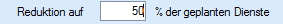 50% der geplanten Dienste kürzen. Dies bedeutet die Dienste werden auf 4.2 Std gekürzt und der Rest mit z.B. Krankheit aufgefüllt.