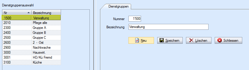 z.B. Gruppe „Pflege alle" enthält alle Dienste der Pflegestationen Gruppe A, Gruppe B, Gruppe C, Abt.2 Ost und Nachtwache.