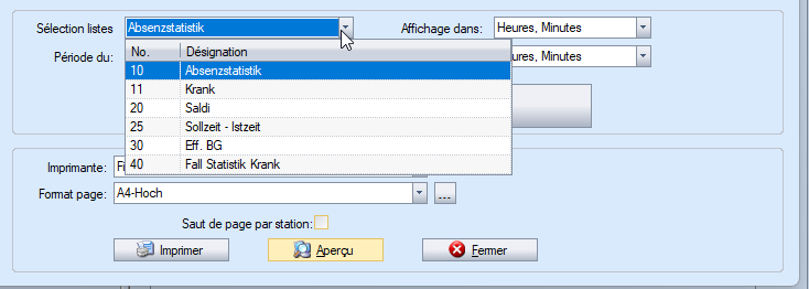 Sous PEPS_Auswertung_Statistik, vous disposez désormais de la liste dans la boîte de sélection.