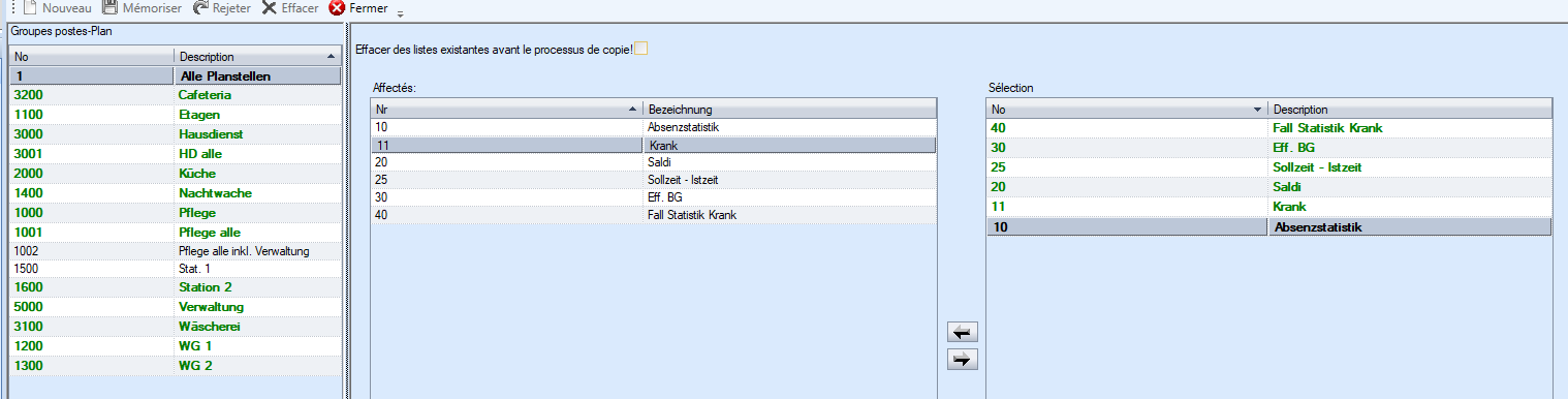 Sous « PEPS_Administration du système_Listes statistiques », vous pouvez attribuer les listes statistiques à différents groupes de postes.
