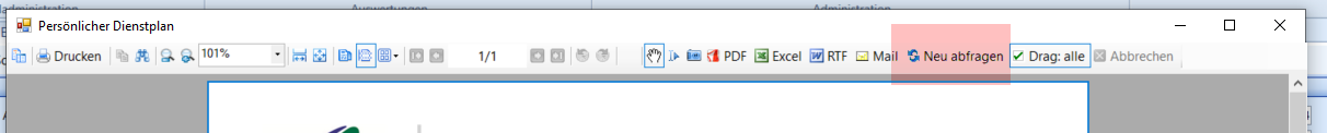 Es erscheint ein neues Pop-up Fester in welchem der Persönliche Dienstplan angezeigt wird. Unter Neu abfragen erscheint ein weiteres Pop-Up Fenster.
