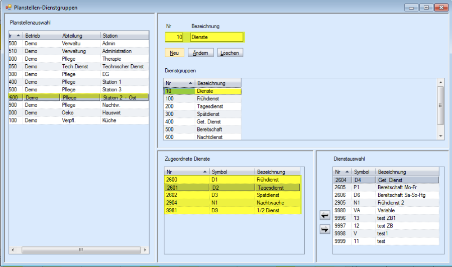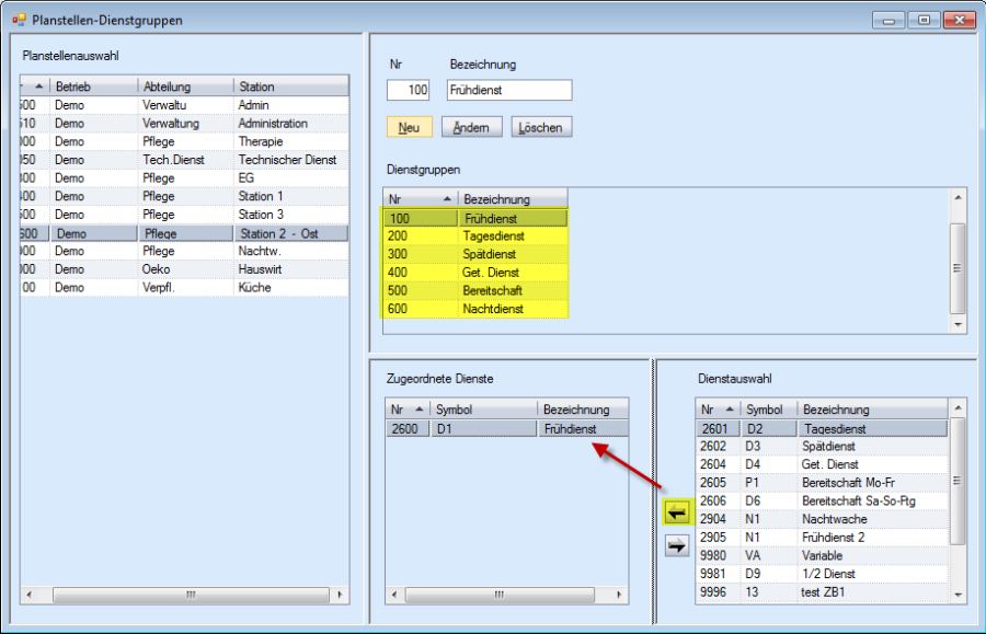 Somit werden nur jene Dienste in der Belegung berücksichtigt, die sich in dieser Dienstgruppe befinden.