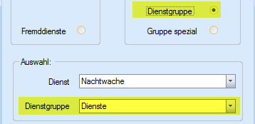 In den Einstellungen wird „Dienstgruppe" selektiert und in der Auswahl Dienstgruppe „Dienste" zählen gewählt.