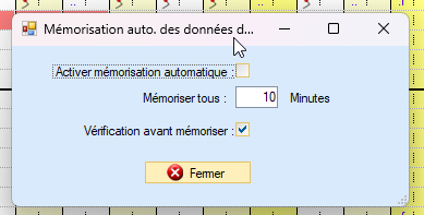 Dans la fenêtre, vous pouvez définir si vous souhaitez activer l'enregistrement automatique, à quel intervalle il doit avoir lieu et si un message doit d'abord s'afficher.