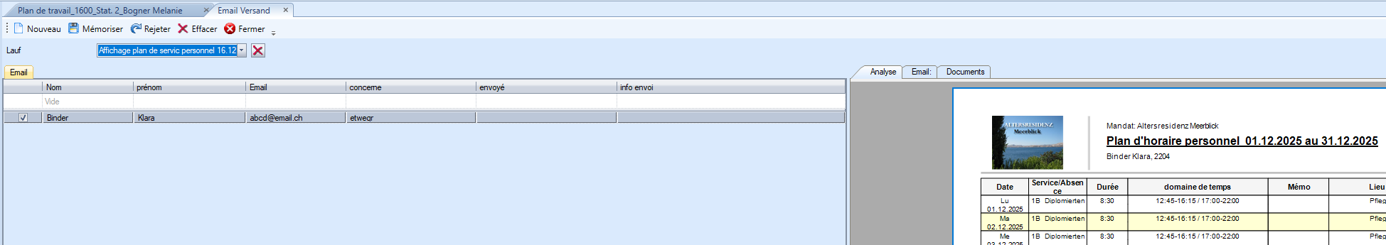 Il existe une option permettant d'envoyer les plannings personnels par e-mail.