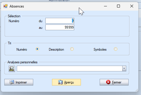 Sous « Sélection », saisissez le nombre d'absences que vous souhaitez imprimer.