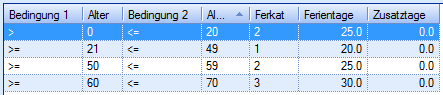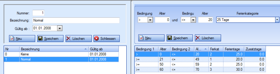 Im untenstehenden Beispiel wird beschrieben wie der Ferienanspruch für Mitarbeiter/Innen bis zum 20. Alter hinterlegt wird.