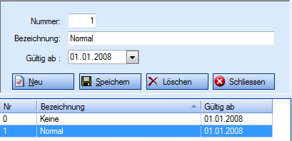 Unter „Gültig ab" können Sie festlegen ab welchem Datum der Typ gültig ist. Mit „Neu" übernehmen Sie den Ferientyp in die Liste auf.