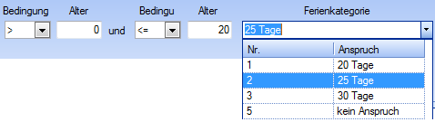 Im rechten Teil der Maske erfassen sie den Ferienanspruch für eine Altersgruppe