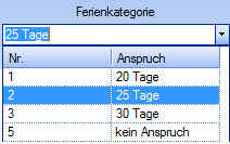 Im Feld „Ferienkategorien" legen Sie den Ferienanspruch für diese Altersgruppe fest. Die Ferienkategorien müssen vorher festgelegt werden (siehe vorangehendes Kapitel)
