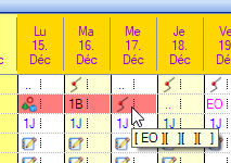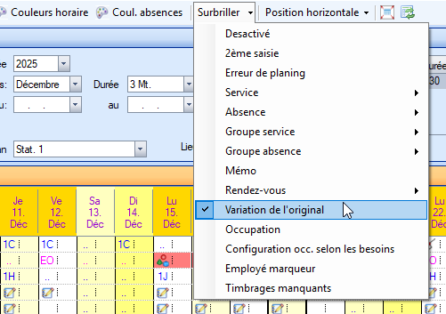 Tous les services qui ont été modifiés depuis leur fixation sont désormais marqués sur le tableau de service. Lorsque vous placez le curseur de la souris sur un service marqué, le service d'origine s'affiche.