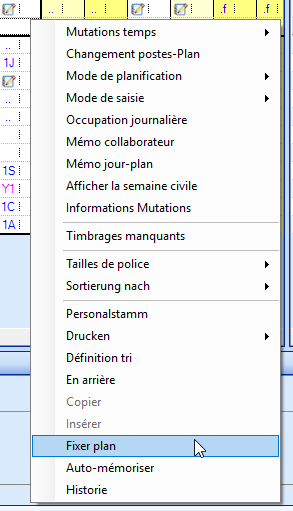 Sous « Fixer le planning », vous pouvez fixer le planning de travail. Placez le curseur sur le jour souhaité jusqu'auquel le planning théorique doit être fixé. Cliquez avec le bouton droit de la souris et sélectionnez « Fixer le planning ».