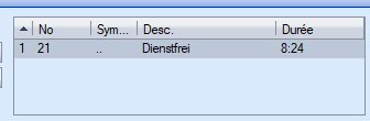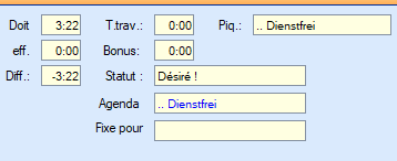Cette partie du tableau de planification décrit une journée de planification d'un collaborateur. L'affichage s'applique au jour et au collaborateur sur lesquels se trouve actuellement le curseur.