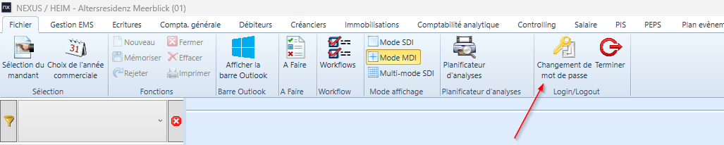 Klicken Sie in der globalen Menüleiste auf „Extra" und wählen Sie die Funktion „Passwort ändern".