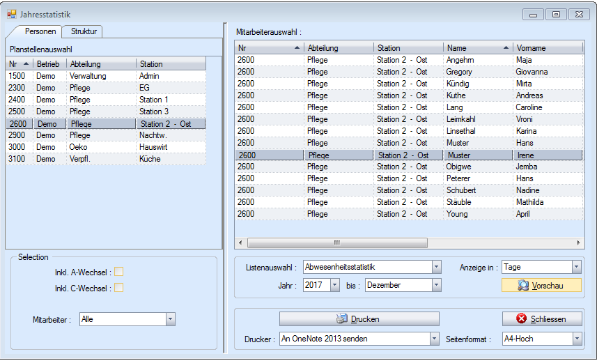 Mit dem Button Vorschau können Sie die Jahresstatistik für die selektierte Mitarbeiter/In