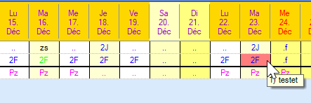 Déplacez maintenant la souris sur le jour pour afficher l'entrée du mémo. Dans notre exemple, le texte « testet» s'affiche.