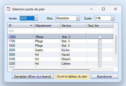 3 : sélection du mois de début le tableau de planification s'ouvre pour trois mois.