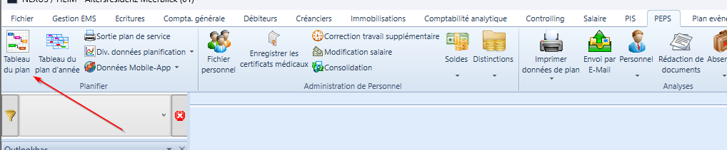 Dans la barre de menu, sous PEPS / Planification / Tableau de planification, vous accédez au tableau de planification.